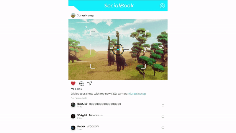 - Share your snapshots with the world on the social network inside Jurassic Snap!
